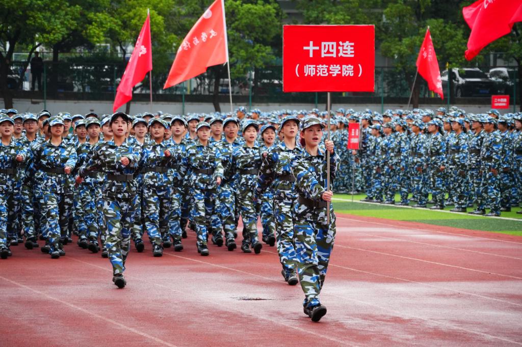 在军训成果展示环节中,各受阅方阵军容严整、士气高昂,依次进行了分列式、军体拳等训练科目的汇报演示。同学们步伐铿锵、动作有力、口号嘹亮,全面展示了为期两周的军训所取得的扎实成效,彰显了2025级新生奋发有为、团结进取的青春风采。