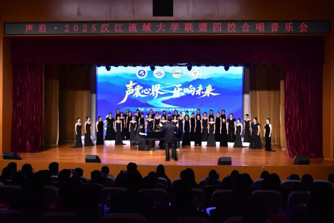 近日,“声启·2025汉江流域大学联盟四校合唱音乐会”在汉江师范学院南风剧场温情启幕。此次音乐会以“声震心界・乐响未来”为主题,由汉江师范学院主办,湖北工程学院、荆楚理工学院、湖北文理学院联合承办,四校师生以合唱为纽带、以音乐作语言,共展青年群体的艺术才华与精神风貌。我校楚韵合唱团70余名师生代表赴十堰参加本次活动。