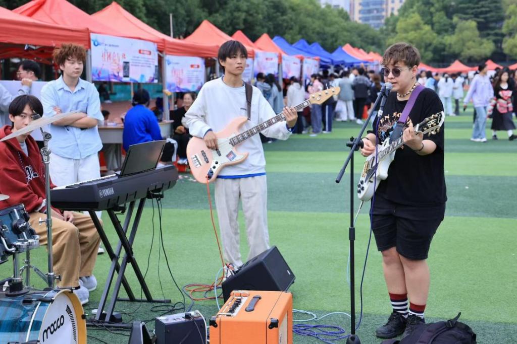 社团招新活动现场人潮涌动,热闹非凡。各社团结合自身特点,以宣传展板、优秀作品展示、文艺演出、现场体验等形式宣传社团文化。