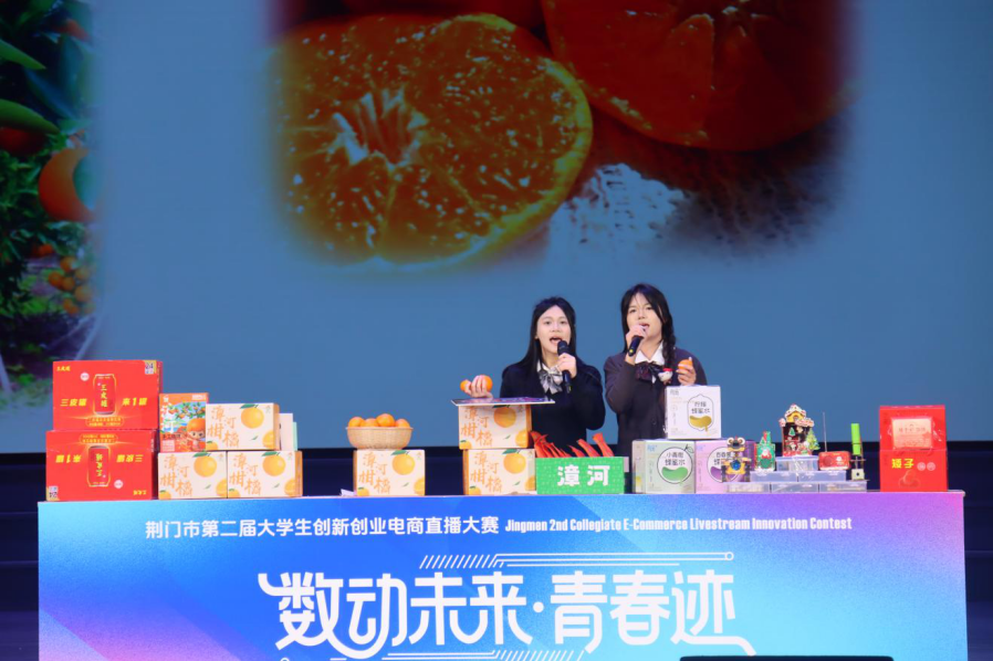 本届大赛由共青团荆门市委指导,荆楚理工学院经济与管理学院联合荆门职业学院、荆门通用航空职业技术学院、中国电信荆门分公司等单位共同主办。大赛是在数字经济快速发展、新业态不断涌现的背景下开展的一项重要实践活动,聚焦AI赋能短视频创作、直播带货等领域,“把赛场搭建在企业一线”,引导学生在“做中学、学中创、创中悟”。自2025年9月启动以来,吸引了全市高校市场营销、电子商务、数字媒体等多个相关专业学生积极参与。决赛现场,10支优秀团队通过“引流短视频+路演+现场直播展示”的方式,围绕荆门特色,结合荆门产业产品、文旅资源、城市精神等,讲述“我与电信”的青春故事。