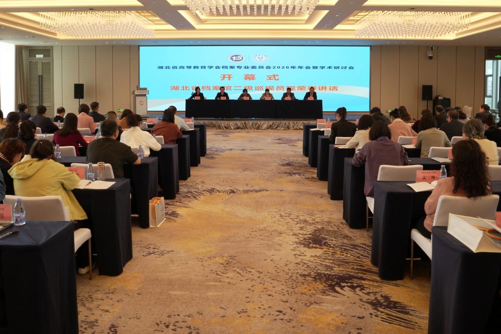 4月22日至24日,由我校承办的湖北省高等教育学会档案专业委员会2026年年会暨学术研讨会成功举行。我校副校长曹甜东,湖北省档案馆二级巡视员程荣春,湖北省档案局副处长郑波,湖北省高等教育学会档案专业委员会主任、武汉大学档案馆(校史馆)馆长席彩云,以及特邀授课专家南京大学教授颜祥林、湖北省档案馆信息化专家严若垒出席开幕式。来自全省40所高校的档案工作负责人、业务骨干及专家学者近百人参会,共同探讨新时代高校档案工作的创新路径与发展方向。