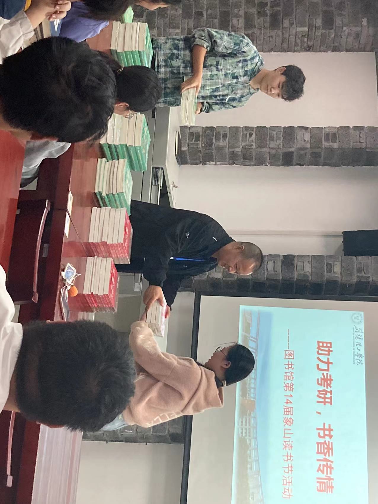 为给考研备考学生提供更有针对性的知识资源服务,帮助学生更好复习备考,10月31日下午,我校图书馆在115自习室开展考研书籍赠送活动。
