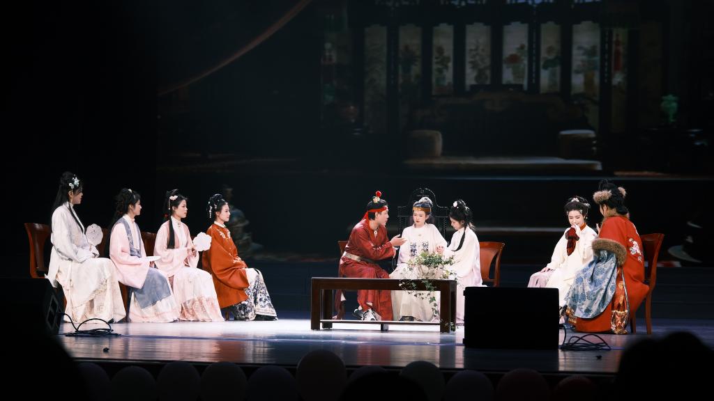 晚会以活力四射的舞蹈串烧拉开帷幕,动感的节奏与灵动的舞姿瞬间点燃全场。英语话剧《红楼梦—宝黛初见》融合传统文化与舞台艺术,经典场景的生动再现为整场晚会增添了浓厚的古典气息;《疯狂动物城》英语配音节选惟妙惟肖,尽显我院学子扎实的外语功底;师生联唱三首不同语种外语歌曲,既展现了外院特色,也传递了师生同心的温暖情谊。