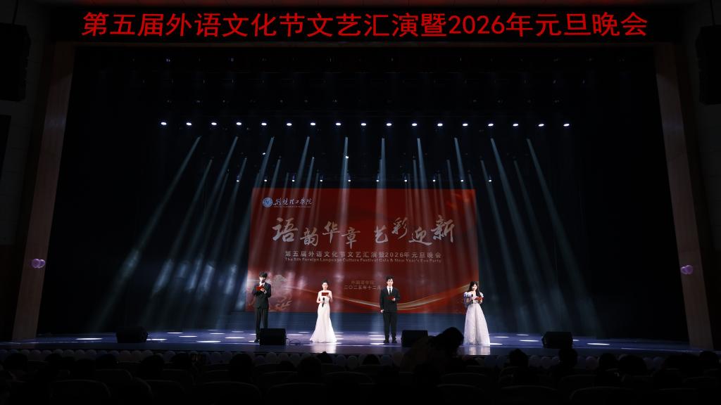 语通中外传雅韵,艺绘新元启华章。12月28日晚,外国语学院第五届外语文化节文艺汇演暨2026年元旦晚会在荆楚理工会堂顺利举行。学工处、外国语学院相关负责人以及学院800余名师生欢聚一堂,共赏中外文化互鉴交融的青春风采,共同迎接新年的到来。